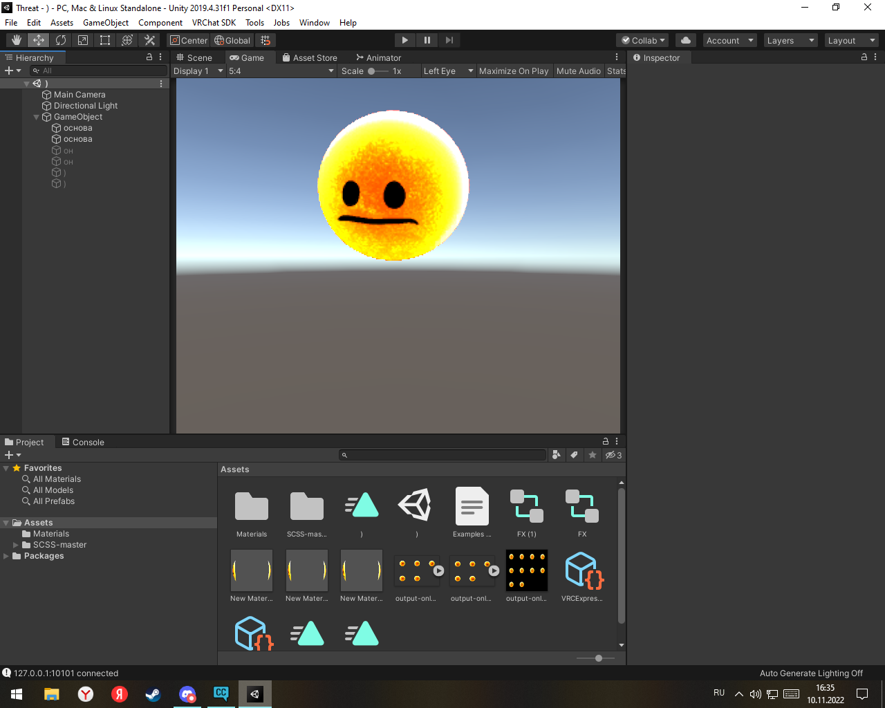 лучше не game а scene открой