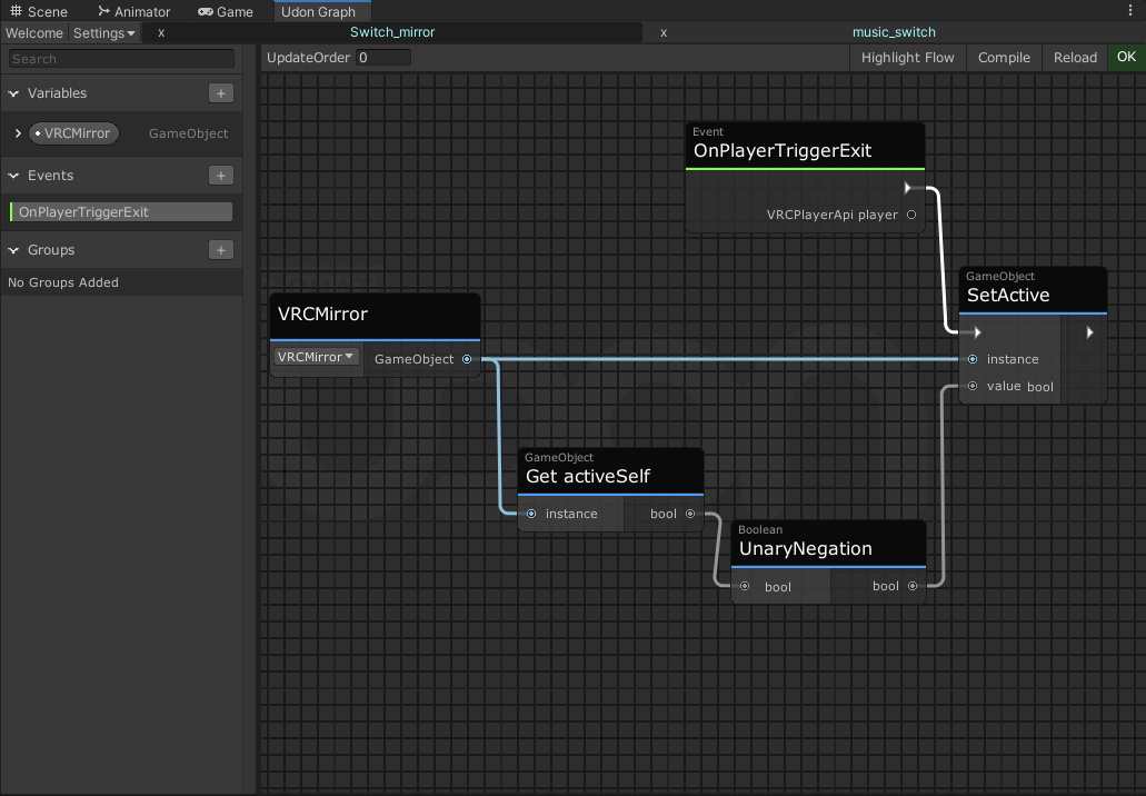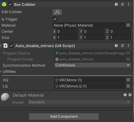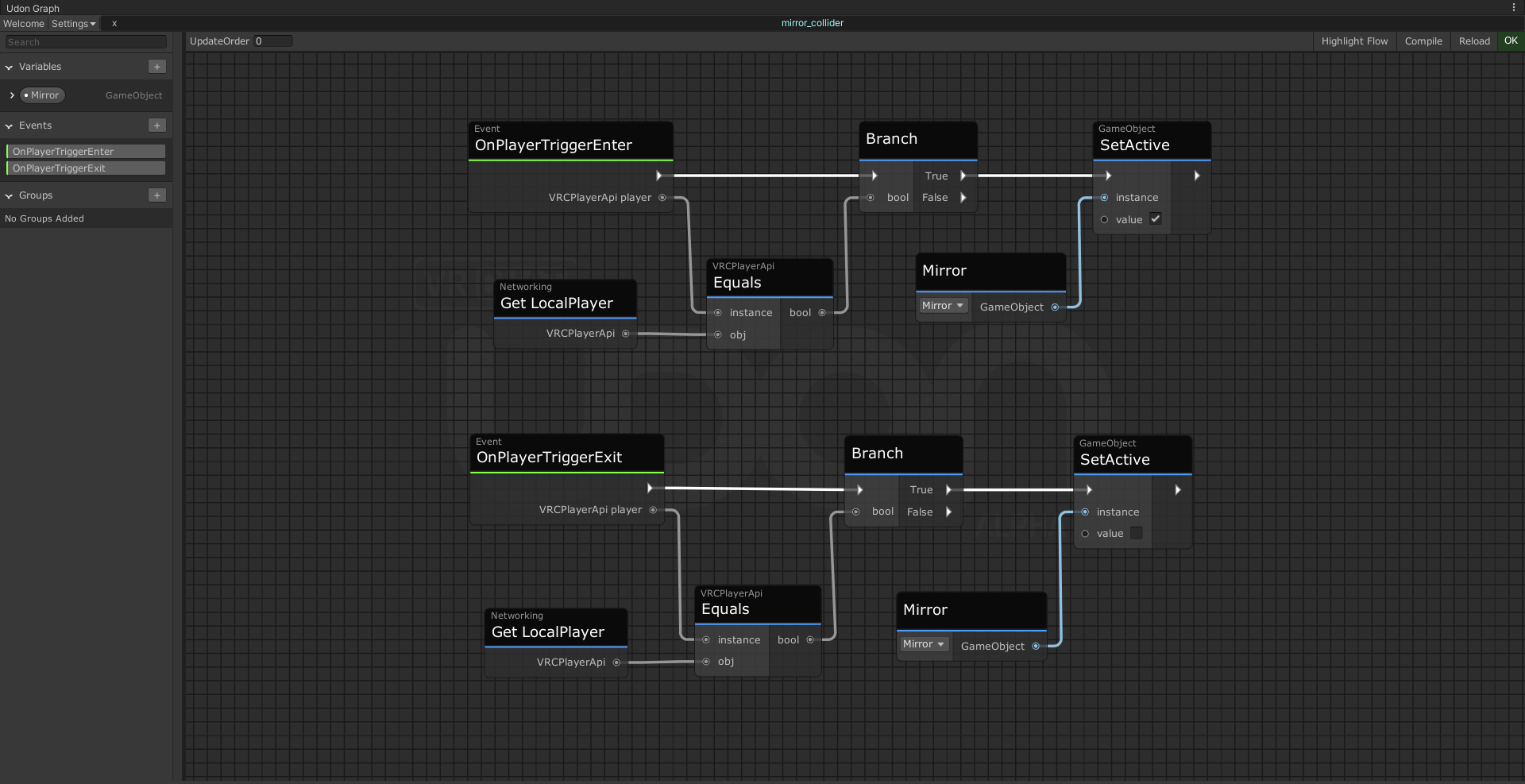 Тебе нужен обьект с box сollider и галочкой isTrigger. Делаешь удон программу с ивентом OnPlayerTriggerExit https://creators.vrchat.com/worlds/udon/graph/event-nodes/#onplayertriggerexit После того как этот ивент сработает - нужно проверить является ли пользователь локальным. если является то можно выключать зеркало