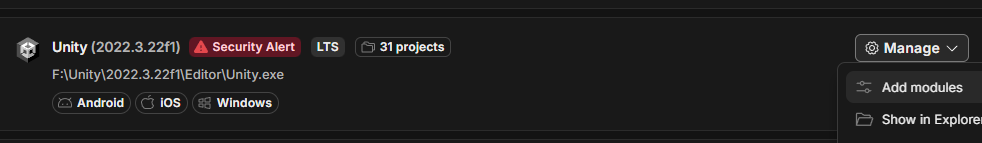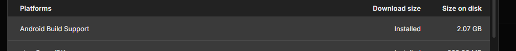 kolyanix 23.03.2026, 15:42:55 Выглядит как будто у тебя Android build support не установлен. Можешь показать модули юнити?