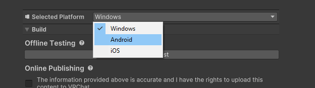 kolyanix 23.03.2026, 09:58:05 Ответ на Errrr Не могу понять как это сделать Для начала надо убедиться, что у тебя в юнити установлен Android SDK Build support. Заходишь в unity hub. После этого заходишь в проект аватара, во вкладку SDK. И переключаешь тут на андроид, галочку с винды лучше снять. Так же советую дублировать объект аватара и отключить основной перед загрузкой. Так как, скорее всего, придётся часть аватара менять. Так как андроид поддерживает только небольшое количество шейдеров из белого списка. Не поддерживает звуки аватара и коллайдеры.